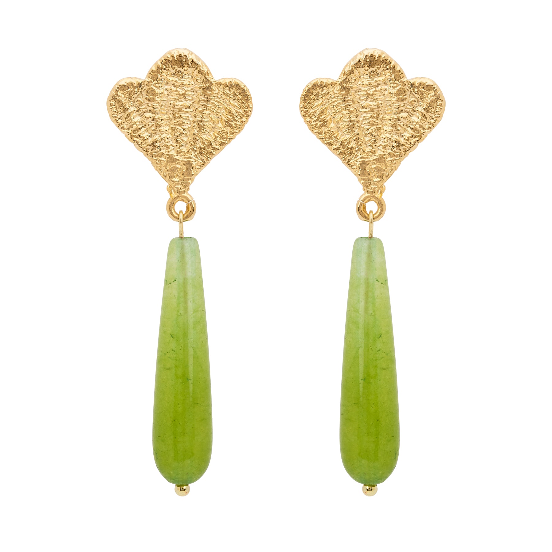 Aura Earrings in goldplated metallic lace and green jade drops.