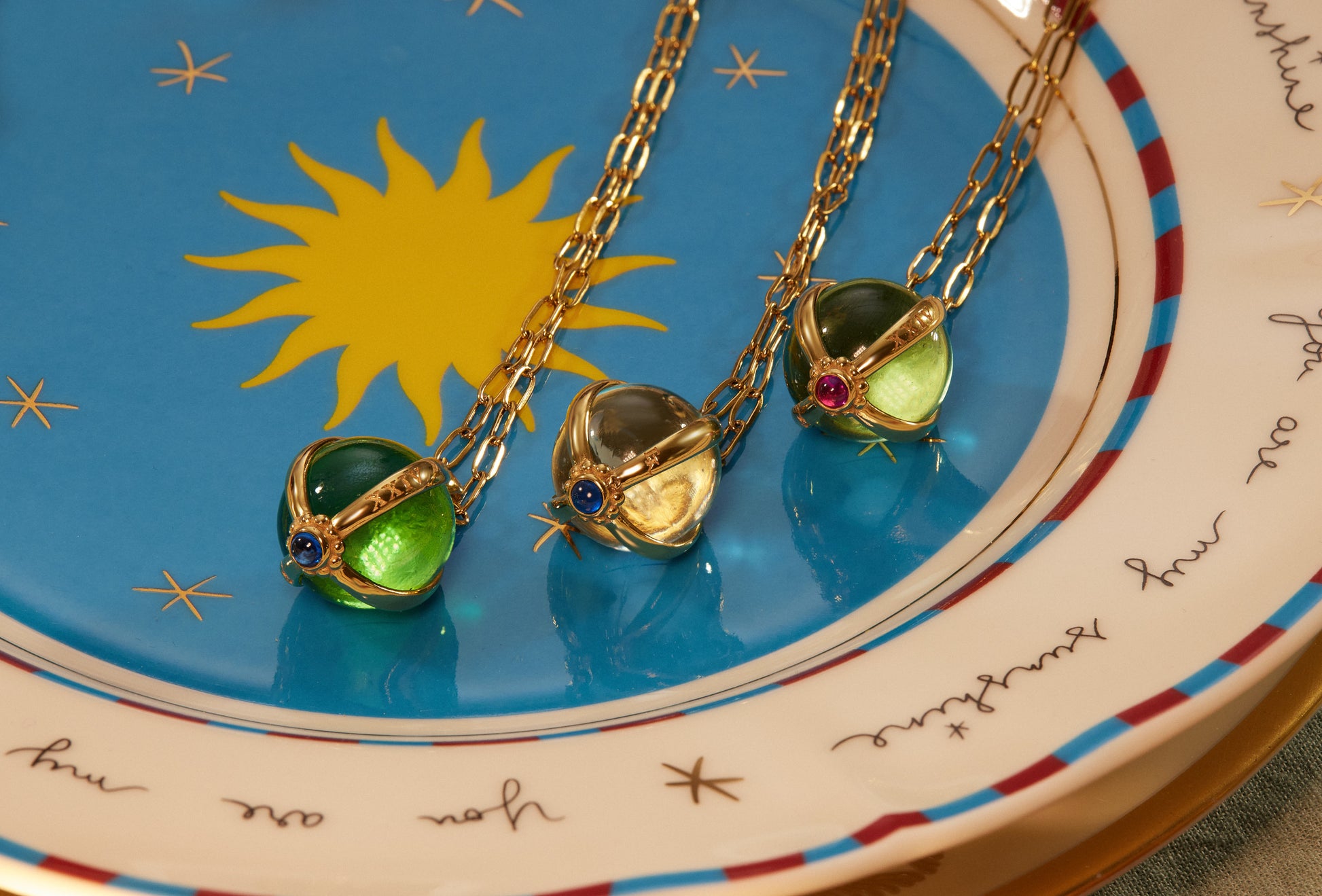 Color: Green glass sphere and dark blue cubic zirconia