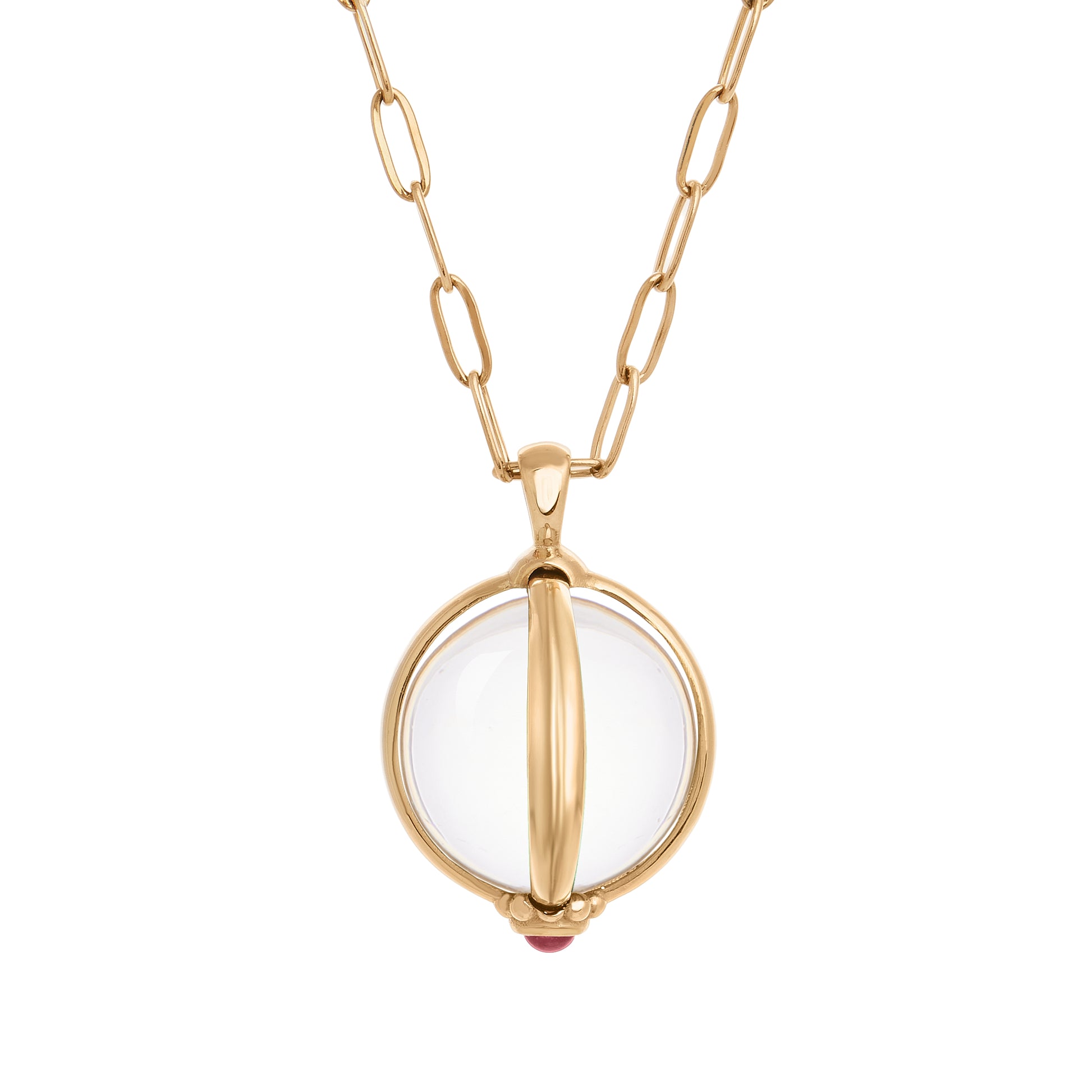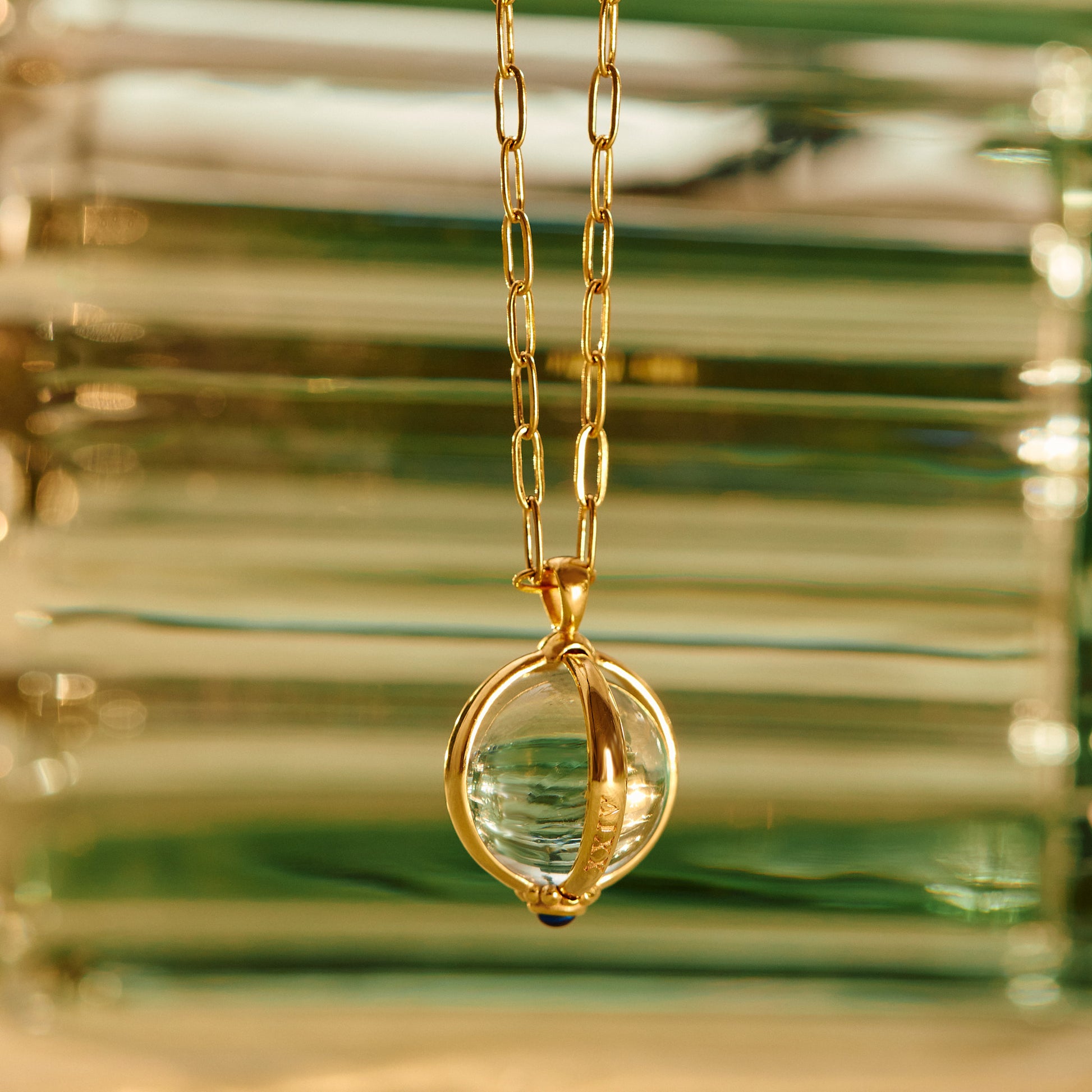 Material: Stainless steel chain, goldplated bronze sphere and glass bead