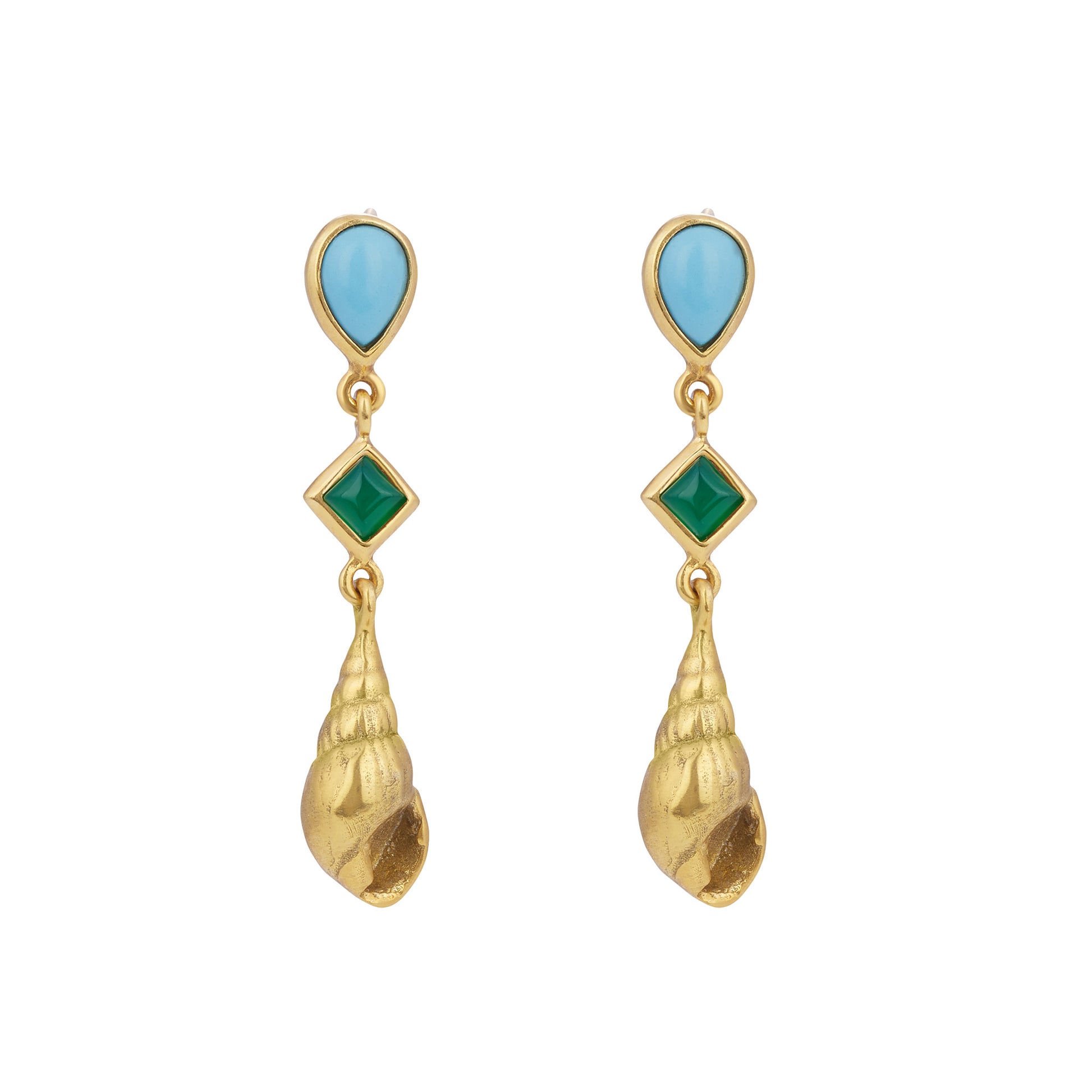 Material: Goldplated bronze, turquoise drop and square green onyx