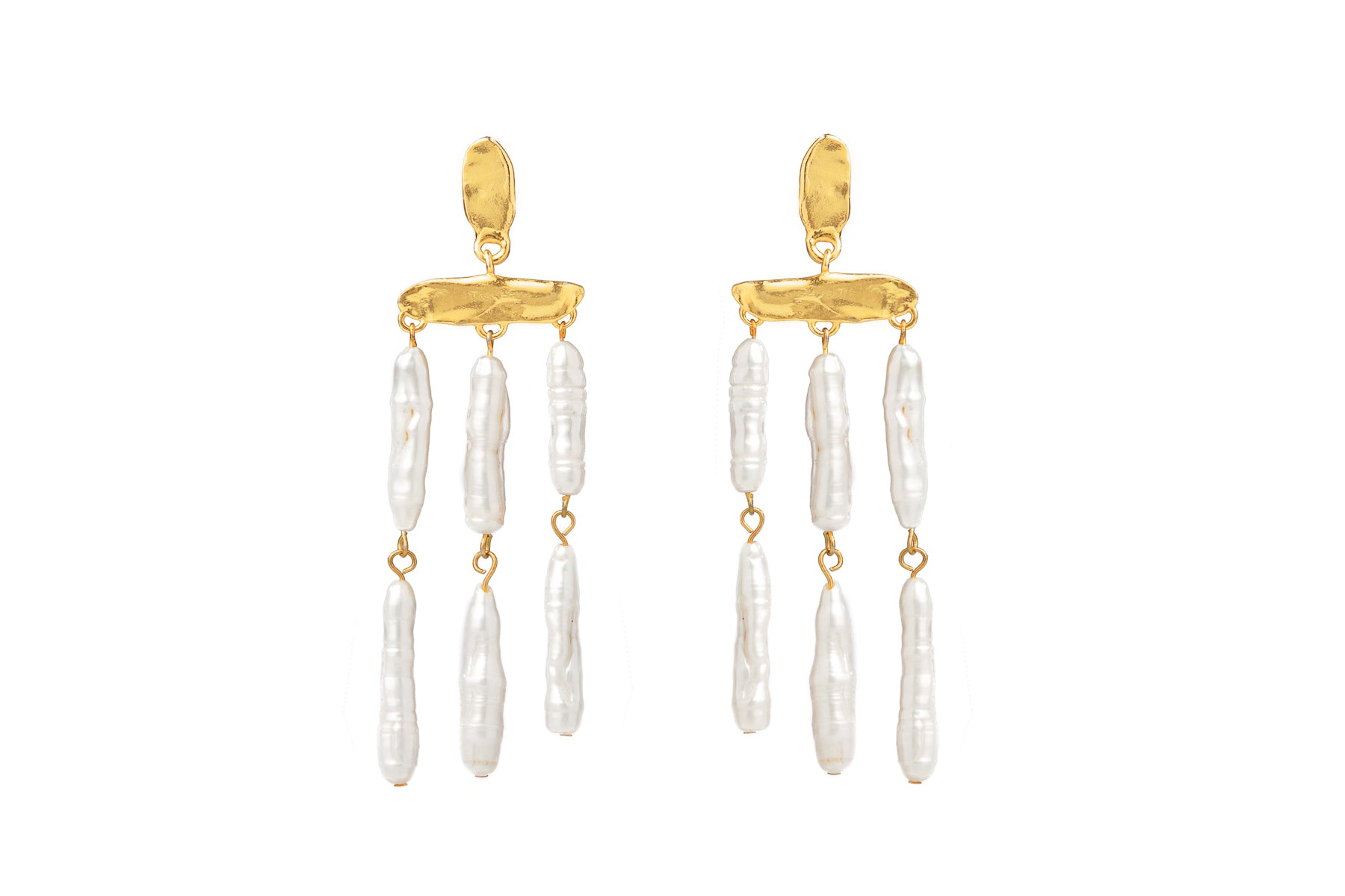 Handmade gold-plated bronze with 6 premium solid 3D mother of pearl drops per earring.
