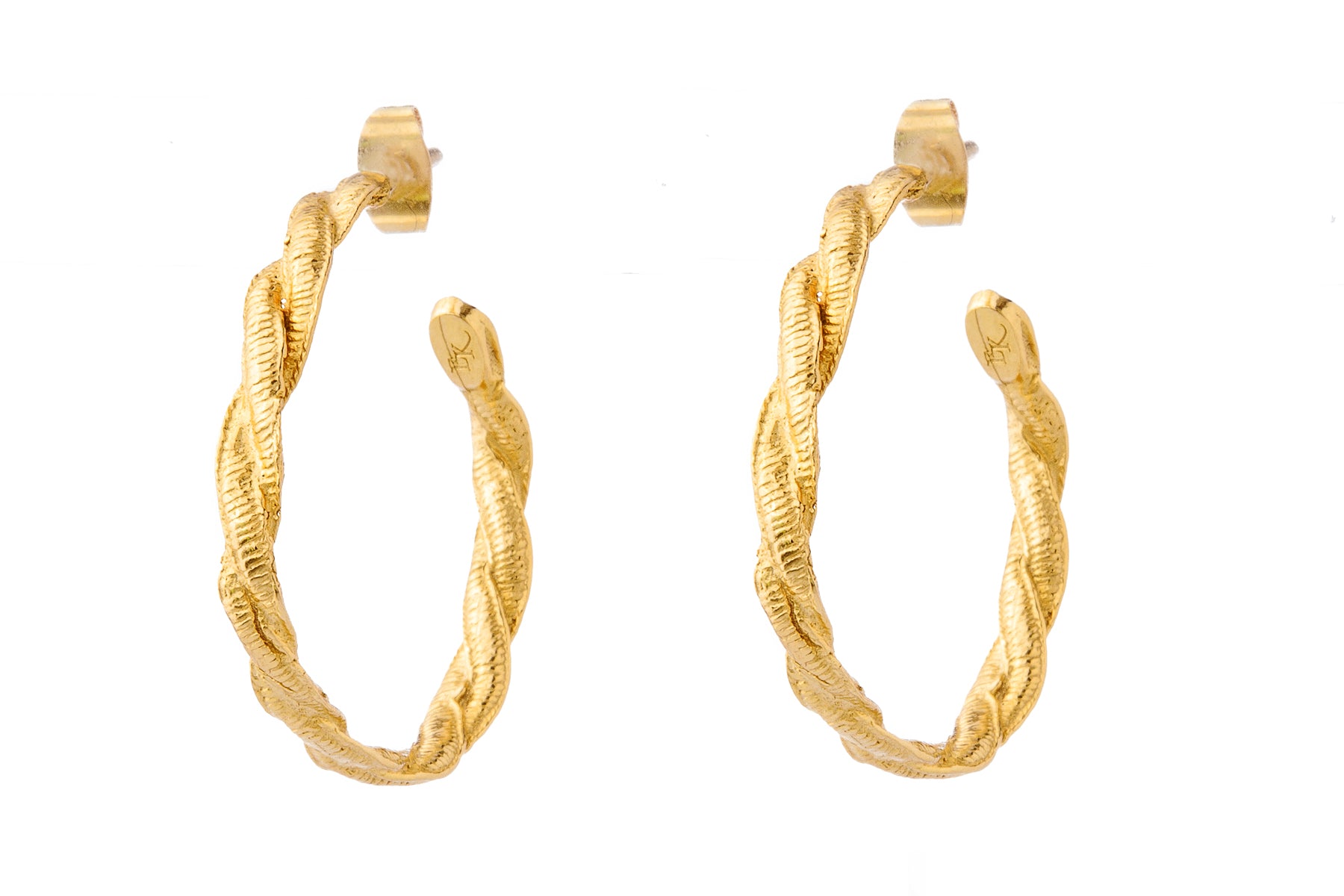 Handmade gold-plated metallic lace strand hoops.