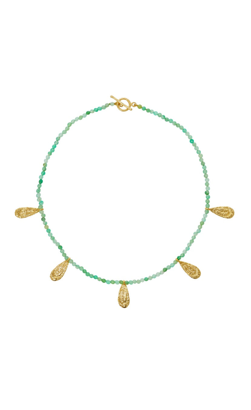 Chrysoprase round stone necklace with goldplated metallic lace motifs