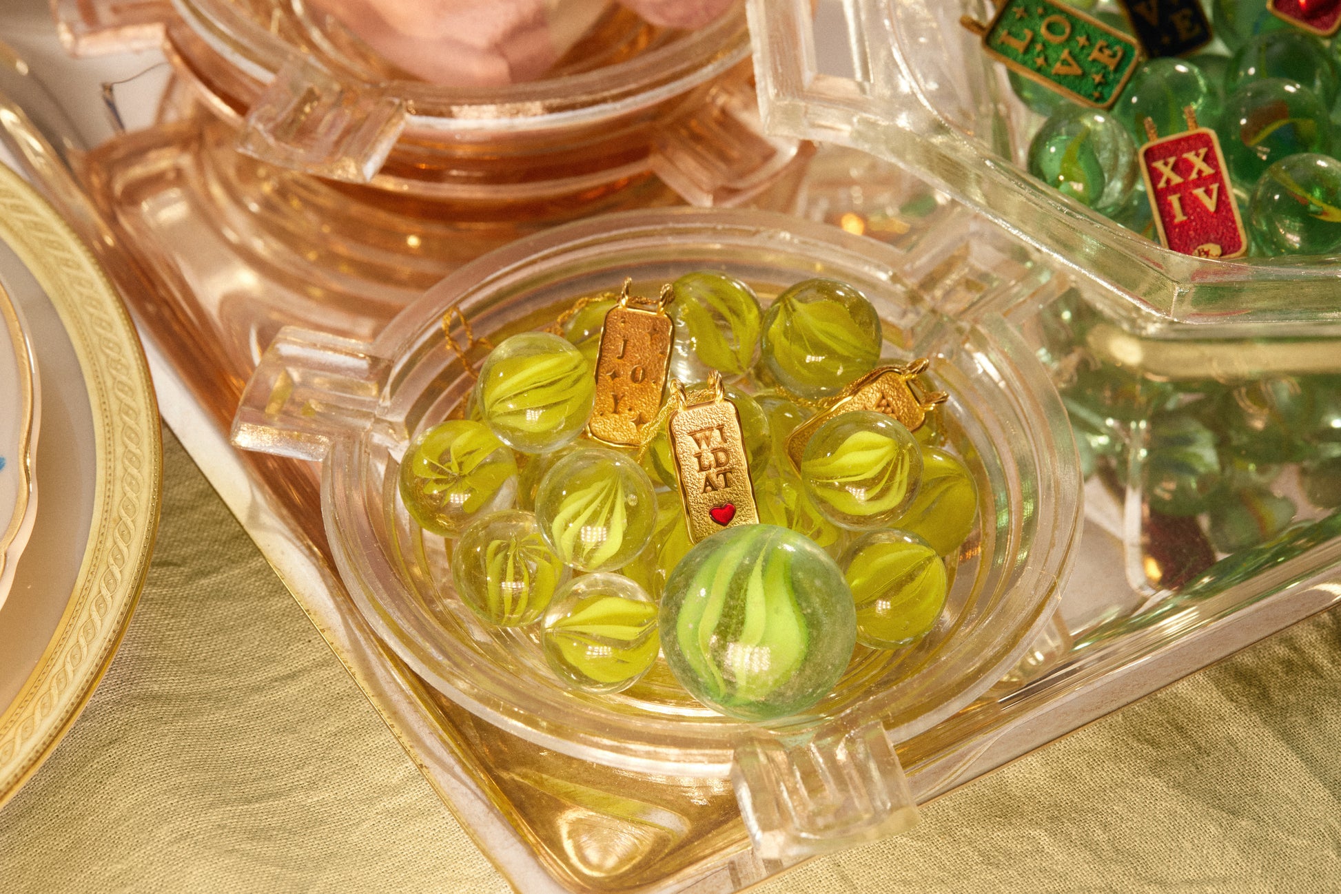 JOY letters on the one side and XXIV on the other. Can be worn from both sides