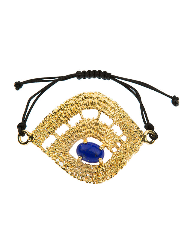 Handmade gold-plated metallic lace & Lapis Lazuli Stone, with a hammered, raffia effect.