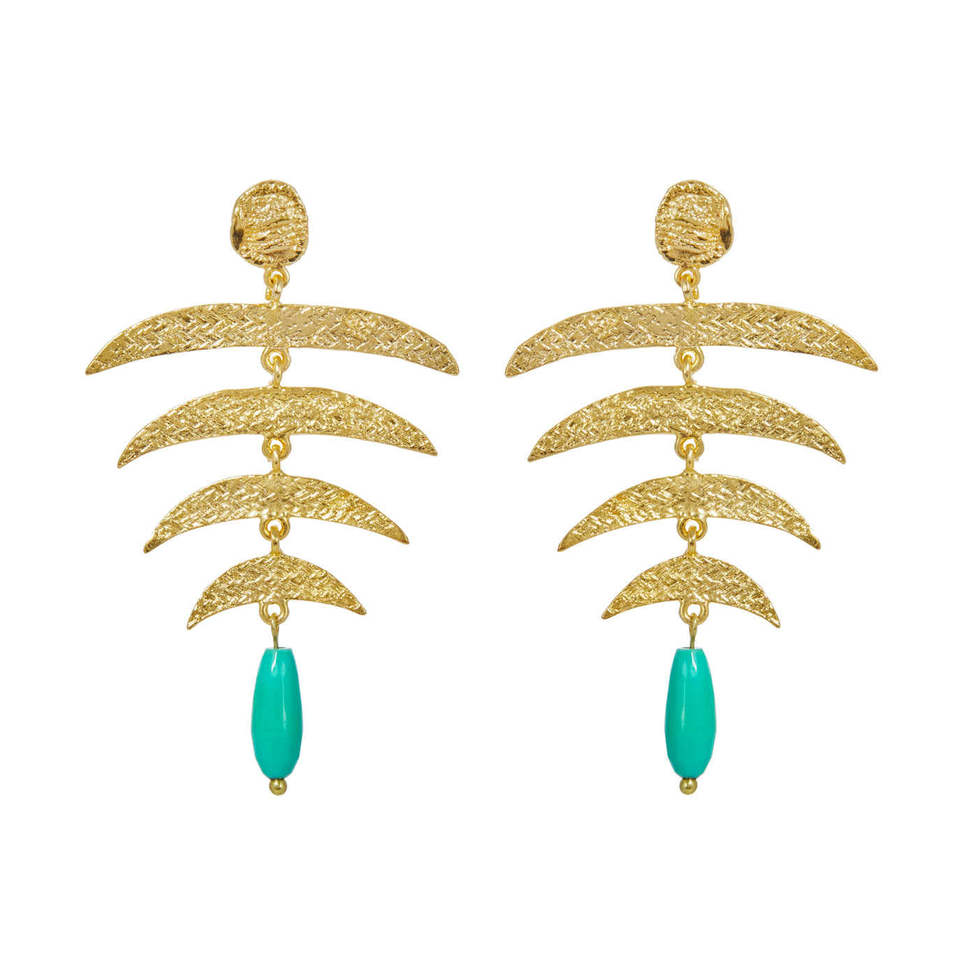 Siena Earrings are made by goldplated thread-like metal and compared with chrysoprase drops.